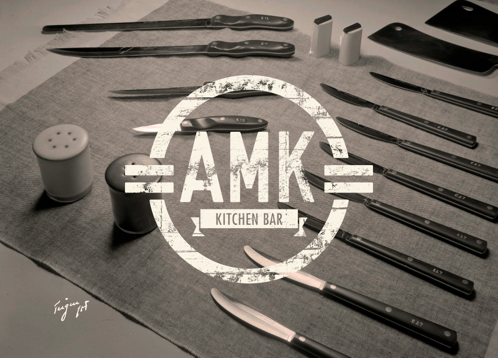 AMK (American) Kitchen Bar is a concept for elevated American comfort food. The logo needed to reflect an urban diner with modern flair. The logo and collateral were designed with elements pulled from a 50's diner but distressed counteract the clean-cut look of that time period.