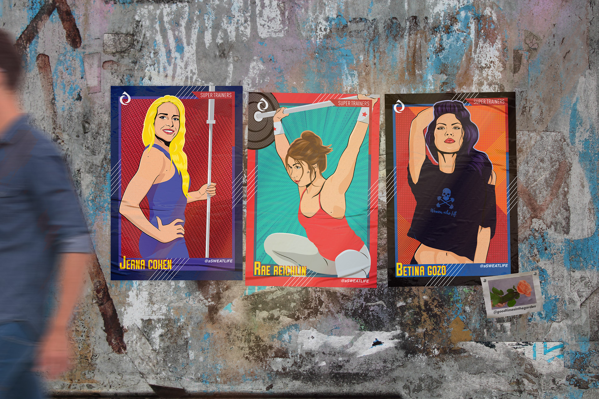 Collaboration with SweatWorking to turn their personal trainers into superheroes for trading cards.